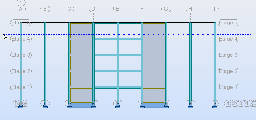 - Sélectionnez tous les poteaux de l'étage 5 en dessinant une fenêtre de capture, comme illustré ci-dessous.