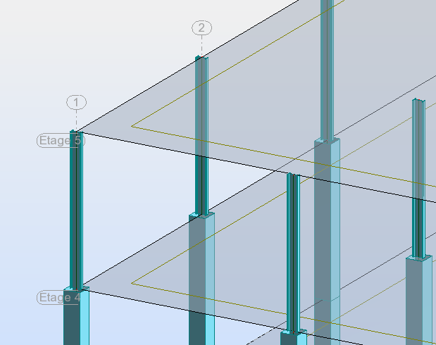 - Passez à la vue 3D et effectuez un zoom avant pour observer les modifications apportées aux poteaux, comme illustré ci-dessous.