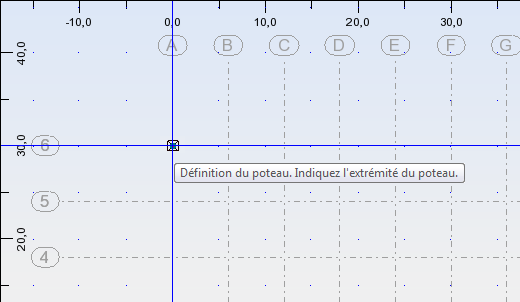 - Placez le curseur dans la zone Début puis cliquez sur l'intersection de la grille A6 pour ajouter le poteau comme illustré ci-dessous.
