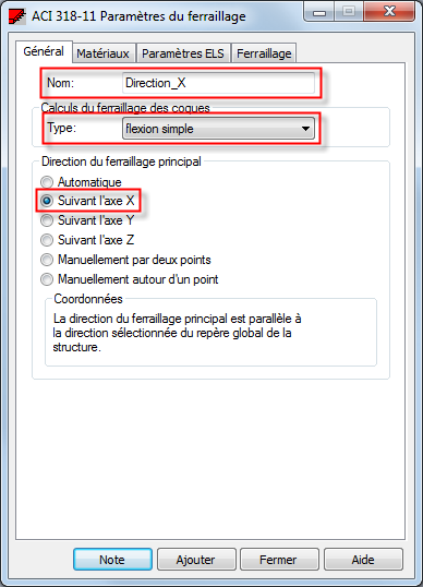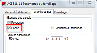 La boîte de dialogue Paramètres d'armature ACI 318-11 s'ouvre.
