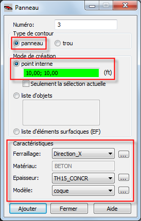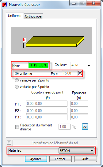 La nouvelle épaisseur TH15_CONCR doit être automatiquement sélectionnée dans la liste Epaisseur.
