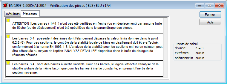 Remarque : Le message de barre variable s'affiche pour rappeler à l'ingénieur que le code n'explique pas comment appliquer des formules de vérification aux barres variables et que la méthode utilisée par le logiciel risque de ne pas concorder avec les résultats attendus.