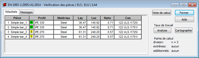 Découvrez comment exécuter les calculs et examiner le résultat de la vérification acier.