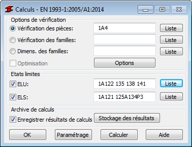 - Dans le groupe d'options Etats limites, sélectionnez ELS.