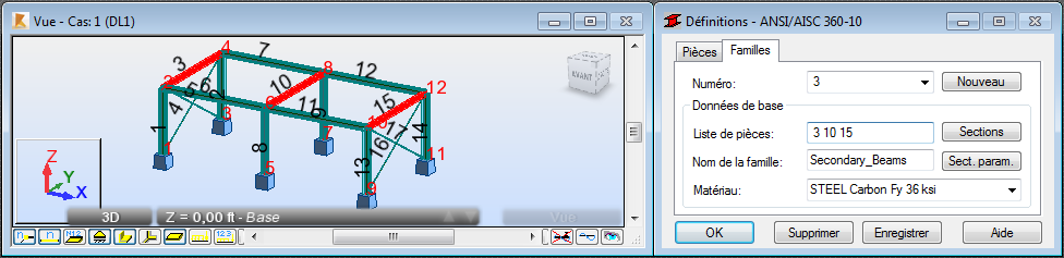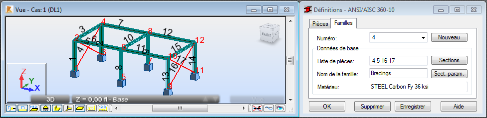Vous pouvez également entrer les numéros de contreventements "4 5 16 17" dans la zone Liste de pièces.