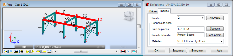 Vous pouvez également entrer les numéros de poutres "6 7 11 12" dans la zone Liste de pièces.