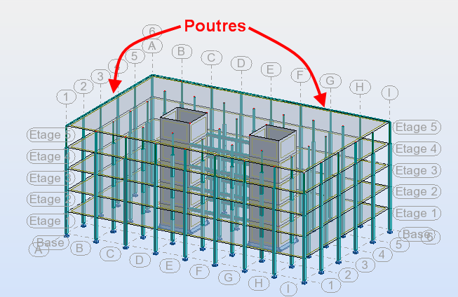 - Effectuez un panoramique jusqu'à ce que les poutres copiées à l'étage 5 soient affichés. Sélectionnez-les, puis supprimez-les.