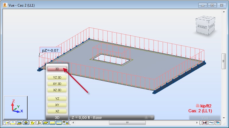 - Dans la zone de sélection de cas de la barre d'outils Sélection, développez le menu déroulant Cas et sélectionnez 3: LL2.