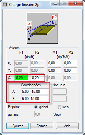 La boîte de dialogue Charge linéaire 2P s'ouvre.