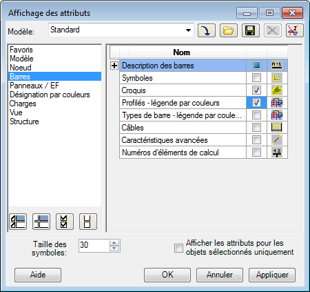 Remarque : Les tailles de section ont été modifiées pour toutes les familles de barres :