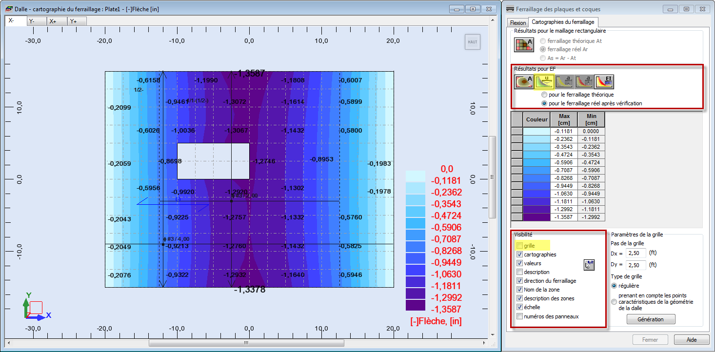Remarque : La flèche est moins importe que pour le ferraillage théorique, bien qu'étendue : -1.3587. Dans l'étape suivante, vous allez apprendre à modifier le ferraillage réel.