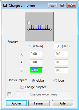 - Effacez la zone PX, entrez la valeur de la charge -2 dans la zone PZ et cliquez sur Ajouter.