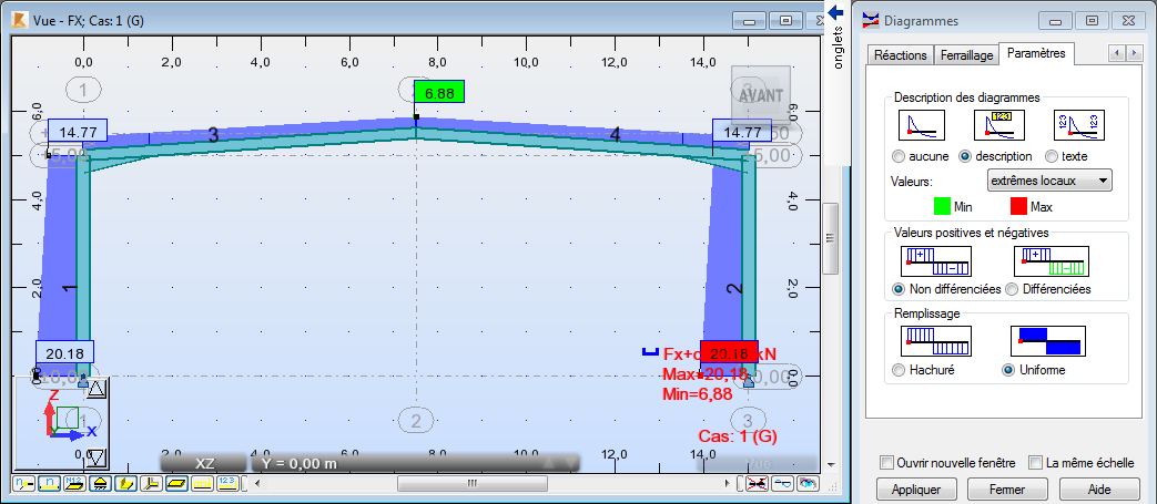 Découvrez comment ouvrir la présentation Résultats et afficher les informations graphiques (diagrammes) sur la structure, y compris l'impact des efforts, contraintes et réactions. Vous allez également apprendre à modifier les préférences des diagrammes.