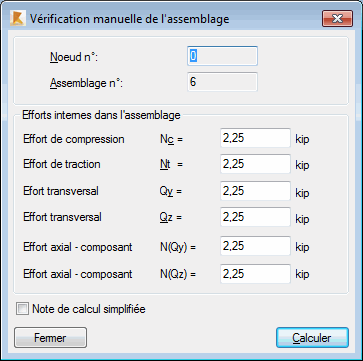 - Effort de compression Nc : entrez la valeur de l'effort de compression pour l'assemblage.