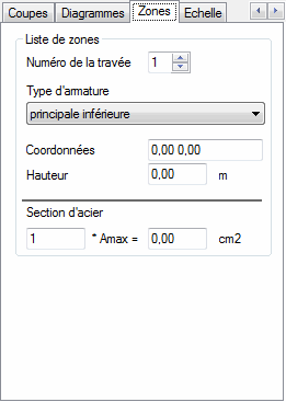 Sélectionnez l’onglet Zones de la boîte de dialogue Diagrammes (MEF) pour modifier le mode de transformation de la section théorique en zones dans lesquelles le logiciel générera l'armature réelle.