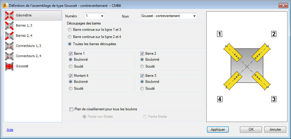 Mode d'assemblage des barres au gousset (assemblage boulonné ou soudé)