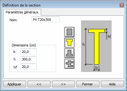 (Type de section) ou sélectionnez Eléments BA > Type de section dans le module P-V-définition pour choisir la section transversale que vous comptez associer à la poutre-voile.