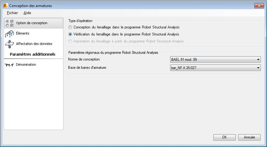 La section Paramètres régionaux du programme Robot Structural Analysis contient des listes de normes de conception et les bases de données de barres d'armatures.