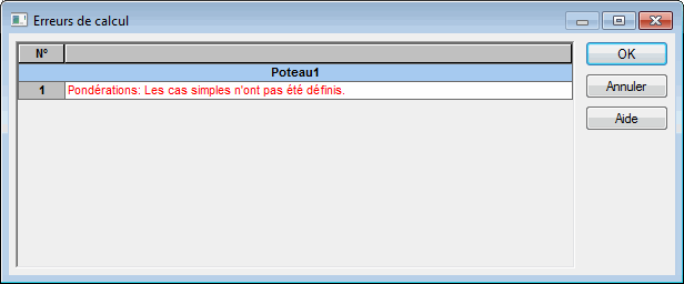 Ces messages apparaissent si les calculs MEF sont incorrects. |