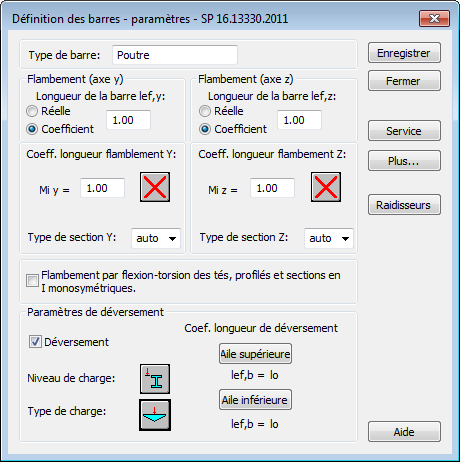 - Cette option permet de prendre en compte les dispositions réglementaires relatives au déversement lors du calcul des barres.