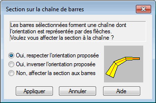 Dans cette boîte de dialogue, vous pouvez sélectionner le mode d’affectation de la section aux barres. La partie supérieure de la boîte de dialogue affiche une question portant sur le mode d’affectation de la section à la chaîne de barres sélectionnée. Il existe trois méthodes pour appliquer la section :