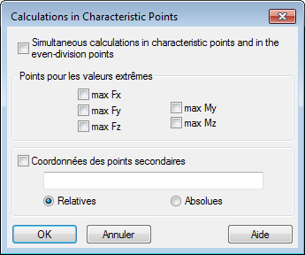 Cette boîte de dialogue permet de définir les coordonnées des points caractéristiques pour lesquels des calculs ou des vérifications des barres seront effectués.
