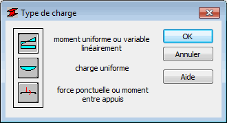 Lors des calculs automatiques, le type de charge change en fonction du cas de charge. Pour les calculs automatiques, l'option par défaut est Moment constant (linéaire). Après la sélection manuelle du cas de charge ou la saisie de la valeur des efforts internes, vous pouvez définir exactement le type de charge.