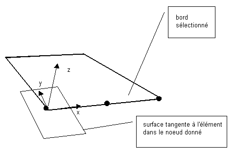 La définition des directions du repère local pour un relâchement résulte directement de la sélection du bord (voir la figure ci-dessous).