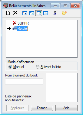 La partie supérieure de la boîte de dialogue Relâchements linéaires contient les icônes représentées ci-dessous :