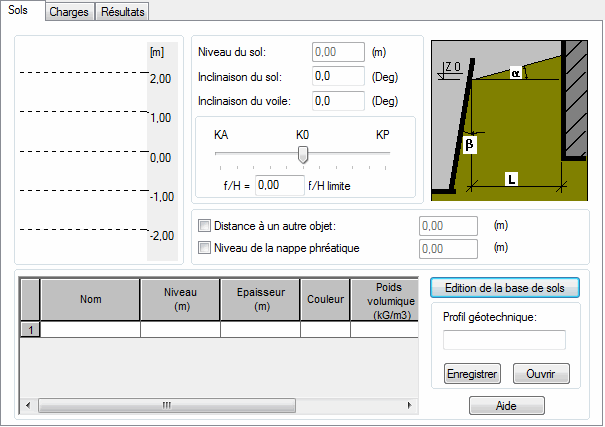A faire : La présence des eaux phréatiques influence la valeur de la poussée en raison de la réduction de la densité du sol et la poussée de l'eau.