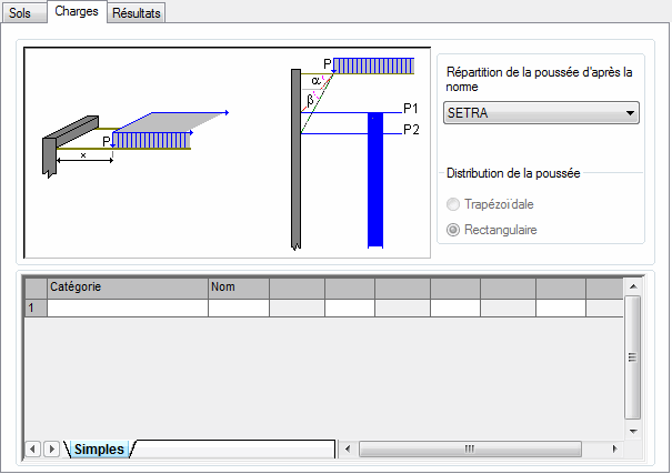 - Charge linéaire : la charge est définie par les données suivantes : nom, distance x [longueur] et intensité de la charge Q [force/longueur] ;