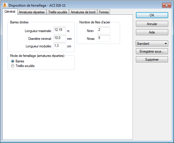 Définit la longueur maximale des barres droites à utiliser dans les armatures. Un diamètre de condition d'origine doit être appliqué.