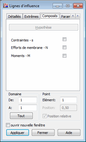Après la sélection de l’onglet Composés, la boîte de dialogue Lignes de l’influence prend l’aspect indiqué sur la figure ci-dessous.