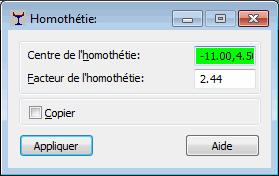 Définissez le centre et le coefficient d’homothétie graphiquement ou en tapant les coordonnées vectorielles dans la boîte de dialogue Homothétie.