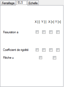 Dans le cas où vous sélectionneriez la norme béton pour laquelle il est possible d'effectuer les calculs en fonction de l'état limite de service, la boîte de dialogue Paramètres d'armature contient un onglet supplémentaire ELS.