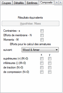 Bouton Hypothèse (sert à sélectionner l'hypothèse selon laquelle les valeurs réduites seront calculées). Ce bouton n'est pas disponible dans la version actuelle du logiciel. Les résultats détaillés pour les plaques et coques sont calculés seulement suivant l'hypothèse de von Mises.