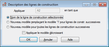 Si vous sélectionnez cette option, le nom de la ligne de construction sélectionnée sera pris en tant que modèle pour les lignes de construction qui ont été définies après la ligne de construction sélectionnée. Le nom de toutes les lignes de construction suivantes est modifié.