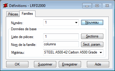 Le dimensionnement et l'optimisation des groupes sont effectués dans les groupes. Par conséquent, lorsque l'utilisateur vérifie les sections, la définition de familles n'est pas nécessaire. Par contre, si vous prévoyez des procédures de dimensionnement ou d'optimisation, vous devez définir des groupes. La principale raison pour laquelle il convient de regrouper les barres en familles est la nécessité d’obtenir à l'issue du dimensionnement une section pour toutes les barres. Par conséquent, le critère utilisé le plus souvent lors de la création des familles est la même fonction des barres dans la structure - poteaux extérieurs d’une halle, poutres principales du plancher etc. Ces éléments doivent avoir la même section.