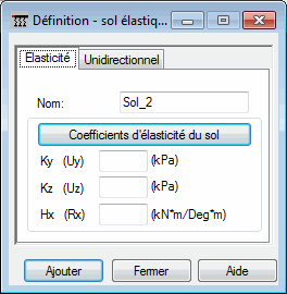 Lorsque vous cliquez sur l'icône Nouveau sol élastique dans la boîte de dialogue Sol élastique - barres, la boîte de dialogue présentée ci-dessous s'affiche :