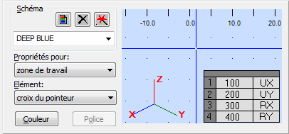 Les champs Intervalle (éléments regroupés dont les couleurs peuvent être modifiées) et Elément (sélectionne les éléments dont les couleurs et les polices peuvent être modifiées) sont désactivés lorsque la boîte de dialogue Schéma est en mode d'édition de texte :
