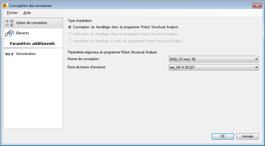 La conception des armatures pour les éléments de structure BA sélectionnés est effectuée en fonction de la norme de conception d'armatures sélectionnée.
