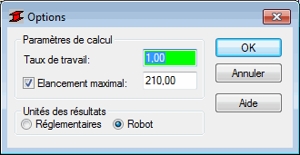 Dans cette boîte de dialogue vous pouvez définir deux paramètres de calcul :