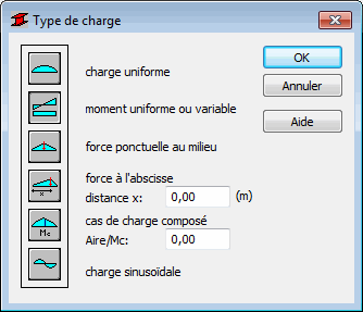La boîte de dialogue Type de charge reflète les exigences de la norme française CM66. Lors des calculs des coefficients réglementaires (latéral, déversement), le type de charge appliqué à un ou deux plans de l'axe de section doit être spécifié en fonction des exigences de la norme. La sélection des cas de charge est déterminée par la norme acier choisie.