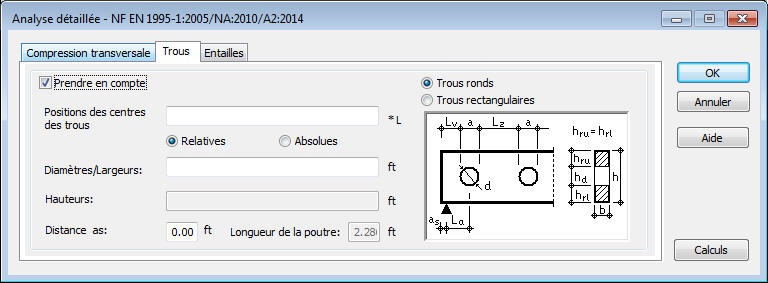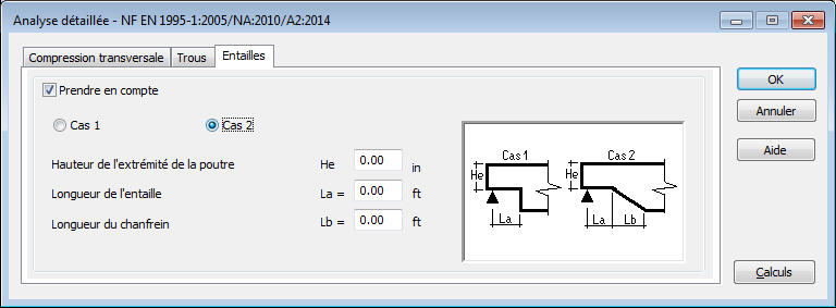 Le programme rend possible l'exécution de calculs supplémentaires sur la base des conditions réglementaires définies dans la norme NF EN 1995-1:2005/NA:2010/A2:2014 :