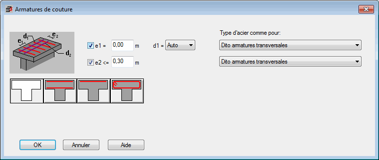 Cette même boîte de dialogue peut être ouverte pour les semelles filantes (le bouton Arm. principales sur l’onglet Armature transversale).
