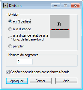 Remarque : Le contenu du champ Nombre de segments dépend de l'option sélectionnée dans la zone Division.