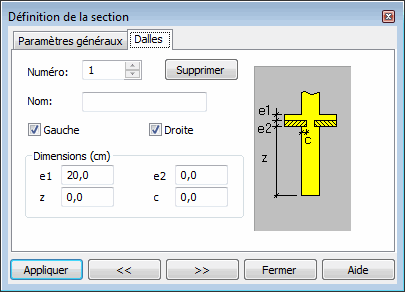 Après la sélection de l’onglet Dalles, la boîte de dialogue Définir sections prend l’aspect représenté sur la figure ci-dessous.