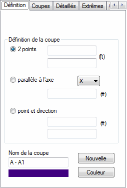 Sélectionnez l'onglet Définition dans la boîte de dialogue Coupes sur panneaux pour définir une nouvelle coupe sur panneau.