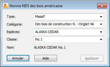 Il existe deux façons d'accéder à la boîte de dialogue Norme NDS des bois américaine :