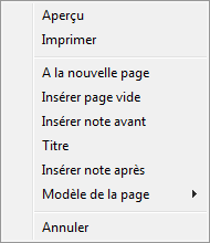 ), tout objet ajouté au panneau droit commencera sur la page suivante. La commande dans le menu contextuel peut également être utilisée pour insérer le saut de page. De plus, le menu contextuel contient d’autres commandes dont la fonction est la suivante :